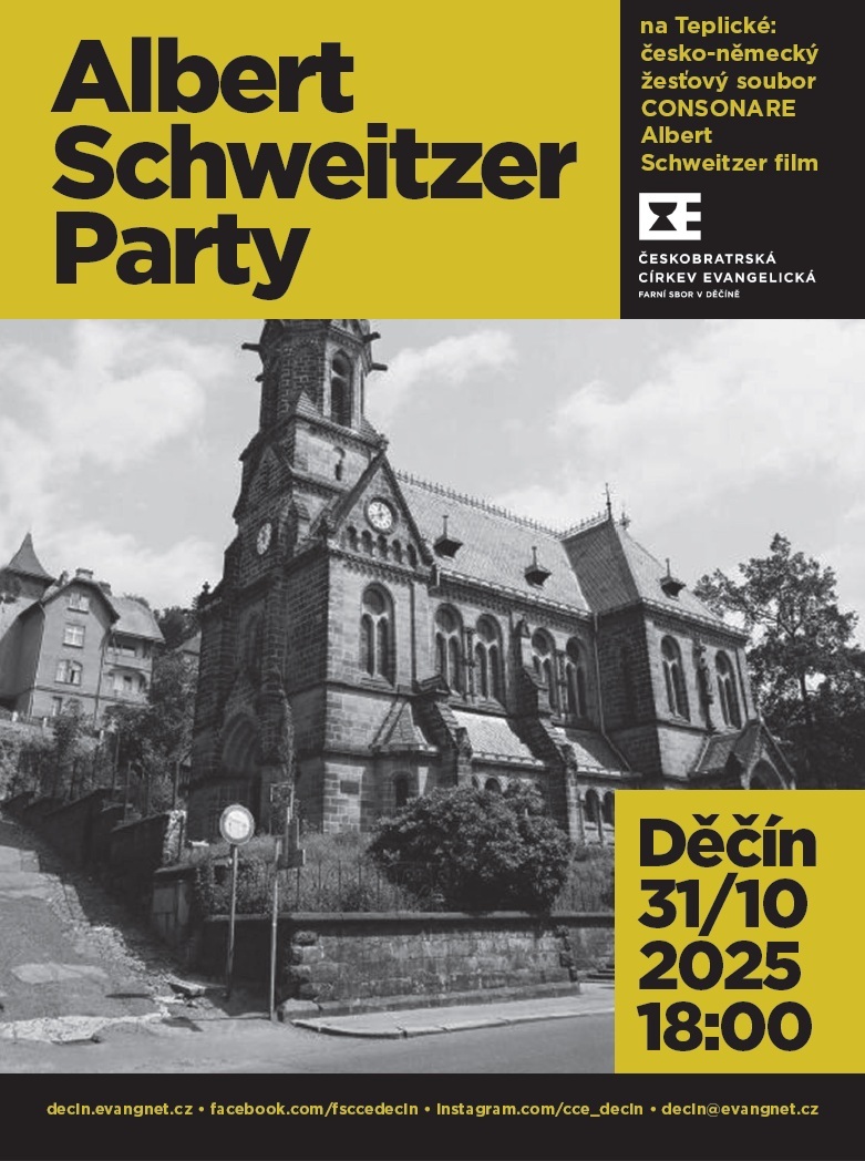 Zveme na již třetí ročník Albert Schweitzer Partym která se opět uskuteční v děčínském kostele na Teplické ulici. V pátek 31. listopadu 2025 od 18:00.