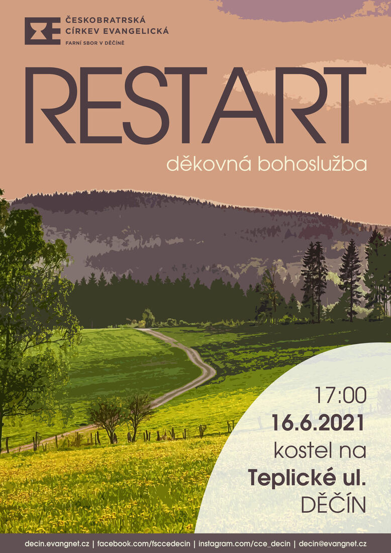 Proto Vám nabízíme setkání ve středu 16. června od 17 hodin, ve kterém uzavřeme to, co bylo a nově se nastavíme pro to, co přijde. Přijďte prožít duchovní RESTART do evangelického kostela na Teplické ulici v Děčíně.